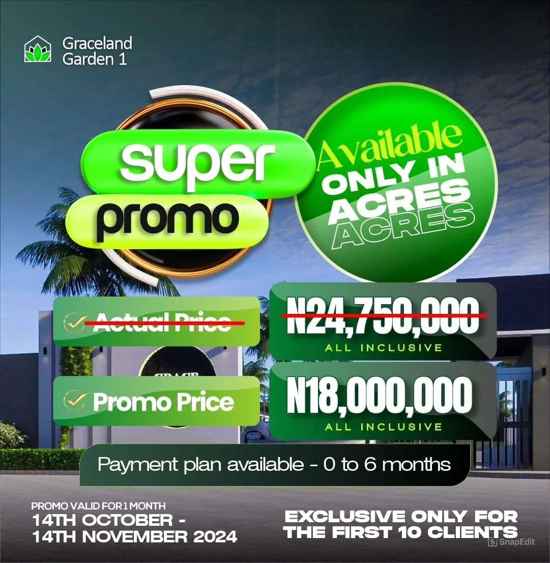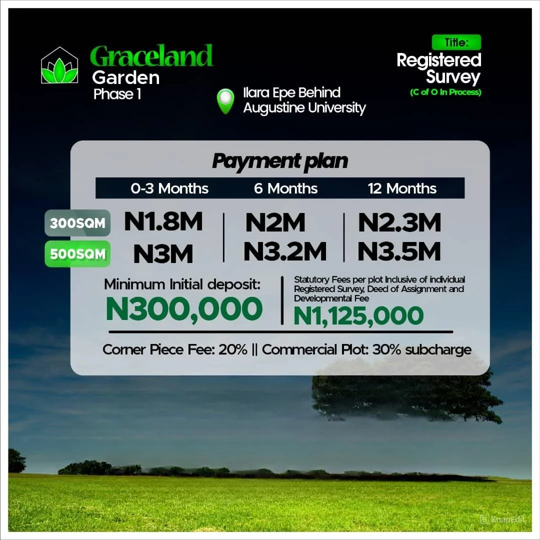 Graceland Garden Promo on Acres is the most affordable you’d ever see in the bustling city of Ilara Epe. It boasts of private investments, schools, banks, a central market, and many other prime developments contributing to the heart of ILARA EPE.