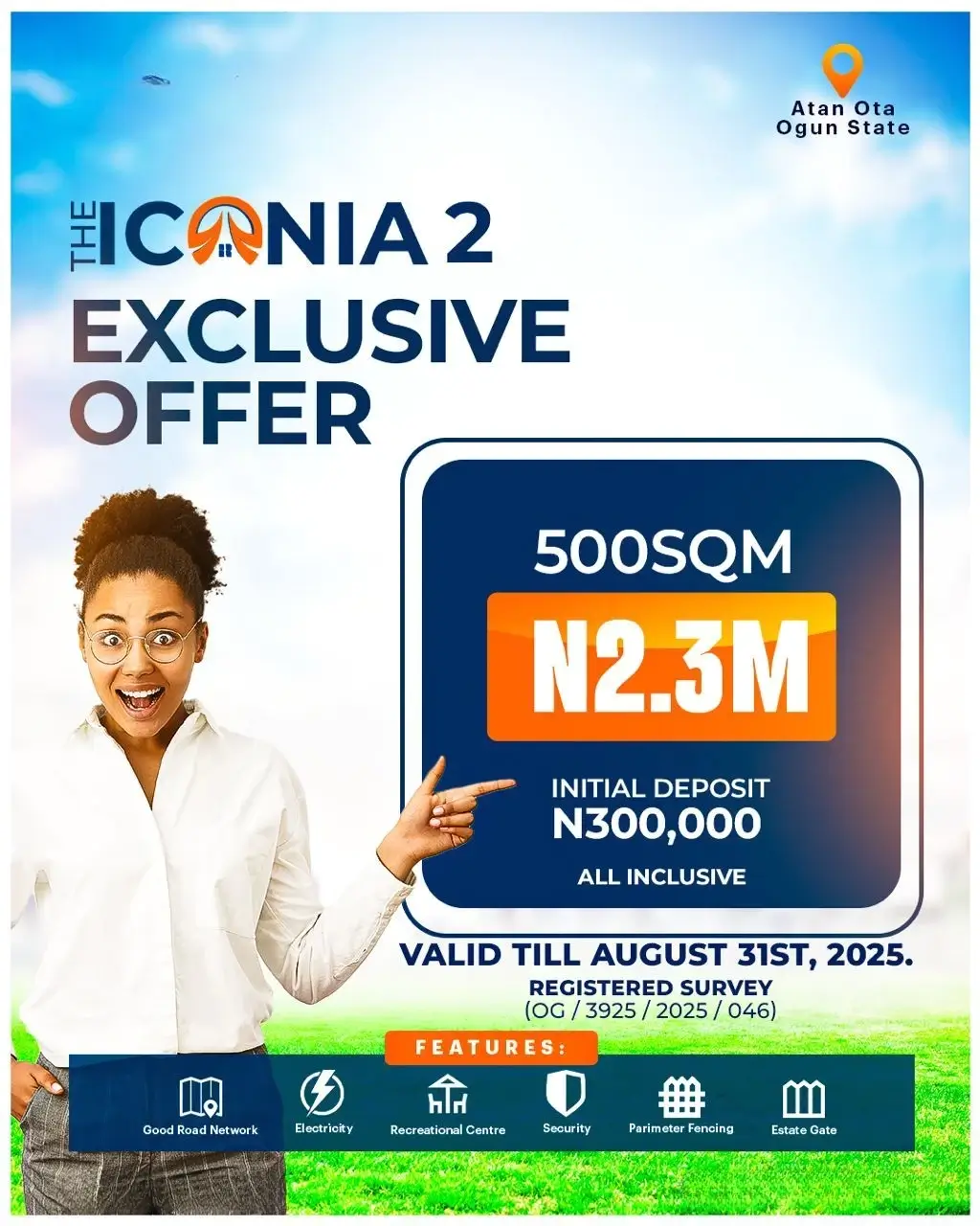 Call or WhatsApp +2348033967980 today to secure your plot at The Iconia 2 and take the first step toward long-term financial growth.